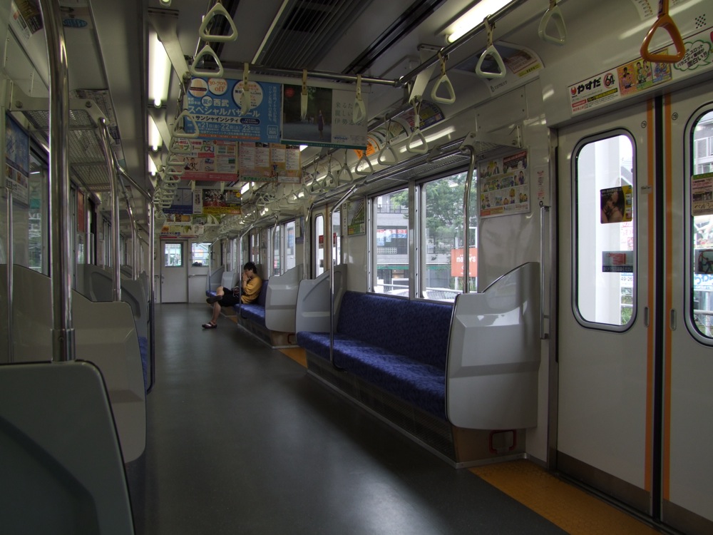 ではここで10030系の紹介です。先程紹介した8000系の後継者として、1983年に登場した10000系電車の、更にマイナーチェンジを施したのが10030系です。今の東上線では最も多く見られる系列かもしれません。天井の空調の変更や車椅子スペースの設置、外観では冷房装置のカバーが連続式になる等の変更が見られた10050番台の車両と共に、大活躍中でございます。最近では内装を中心にリニューアルされた車両(右上写真参照)も多く、行先表示器のフルカラーLED化や、先頭車にはスカート(前面排障器)が取り付けられる等、外観的にも少し変化が出てきています。