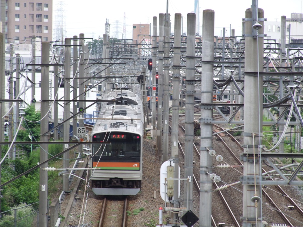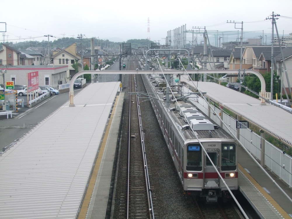 坂戸駅では越生線を左に見ながら(左上写真参照)、一気に右カーブします。そのまま北坂戸駅を過ぎ、越辺川を超え、都幾川を超え、沿線は徐々に緑が多くなってきて長閑な風景になってきますが、やはり駅に近付くと、ある程度の宅地化が行われているのが、東上線の凄いところでしょう。この為、快速や急行列車は、東松山駅を過ぎて、やっと空いてきた…という感じになります。流石は通勤・通学路線です。