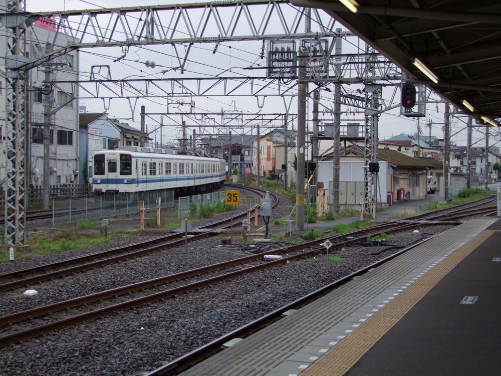 川越駅を出ると、暫くは川越線と並走しますが、あちらは4両編成で20分毎に1本の運転なので、車内からはなかなか姿を捉える事が出来ません。そして、両線が分かれる辺りに、1本の線路を越えるのですが、これが西武新宿線で、車窓の右側には当路線の本川越駅が臨めると思います。要は、川越市中心部には、川越駅、川越市駅、本川越駅と3つの駅があるものの、それらは全て別の場所にあり、そして本川越駅はどの路線とも接続していないのです(割りと近いのは本川越駅と川越市駅で、徒歩8分程です)。西武線だけ独立した形になっていますが、喜多院や菓子屋横町等、川越の観光ポイントに一番近いのは本川越駅であり、それぞれにメリットもあれば、デメリットがある状況になっているのかもしれません。川越市駅以降は、日中は快速と急行だけの運転になり、本数は半分以下に減ってしまいます。