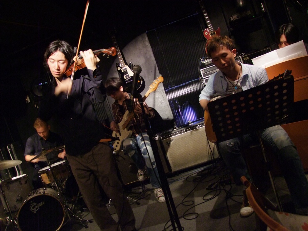 CDレコーディング時にも説明しましたが、今回のCDに自分は、全部の曲に参加しているわけではありません。それこそ、自分がこのバンドに初めて参加する以前からレコーディングは始められており、そしてメンバーも何度か変わり、やっとの事で今月、発売に至ったという経緯があるのです。それは何ヶ月…とかの単位ではなく、恐らく4,5年は掛かっており、だからこそ拘りの1枚が出来たという見方もあります。自分が参加しているのは2曲だけですが、他の曲もライブではよく演奏させて貰っているので、自分にとってもお馴染みの曲ばかりが収録されています(全て Tsumuzi 君のオリジナル曲です)。それはクラシックの世界であったり、ヨーロッパのラテン音楽であったり、時にはオリエンタルな雰囲気を持つ曲であったり…、早い話し、自分の好みだ…という感じではありますが(笑)、面白いものが出来上がったと思っています。是非とも手に取って頂き、聴いてほしいものです!