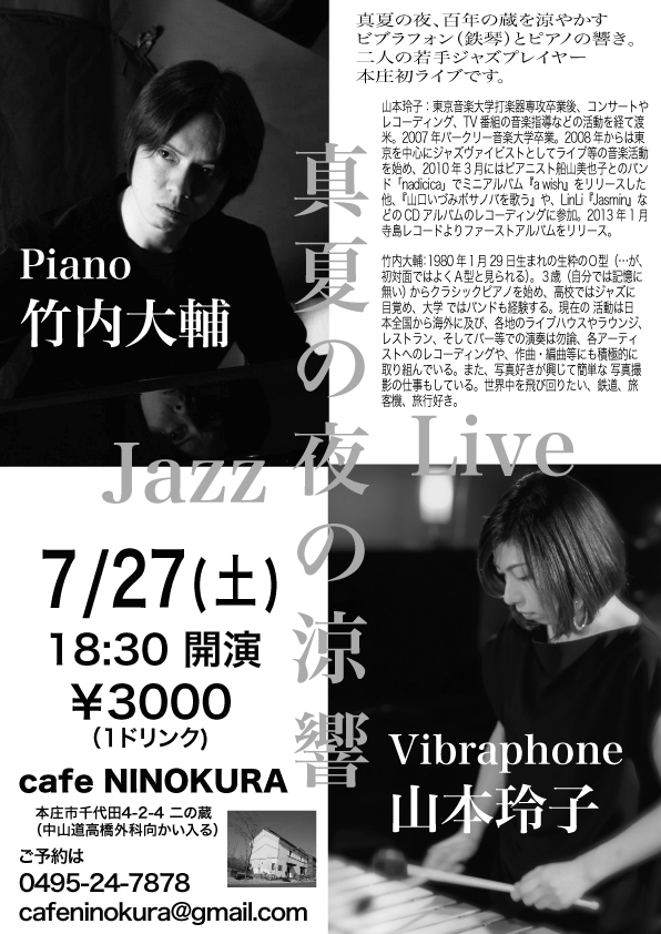 久し振りの、ヴィヴラフォンとのデュオライブとなります。基本的には