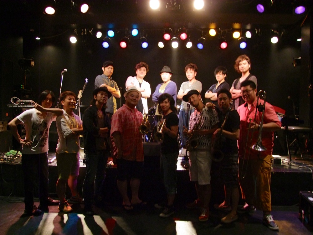 当然、この迫力はお客さんにも伝わっており、一番の盛り上がりを見せてくれました。勿論、曲中のテーマでもそうですが、それぞれのソロの部分も迫力がある展開を見せており、サックスバトルやトランペットバトル等も見所となっていました。新たなサウンドの境地を発見出来た感じで楽しく、自分達のステージの締め括りになったと思いました。FIRE HORNS の皆さんに本当に感謝でした!