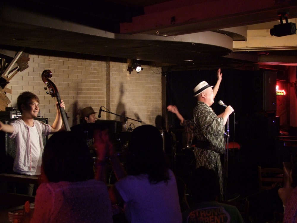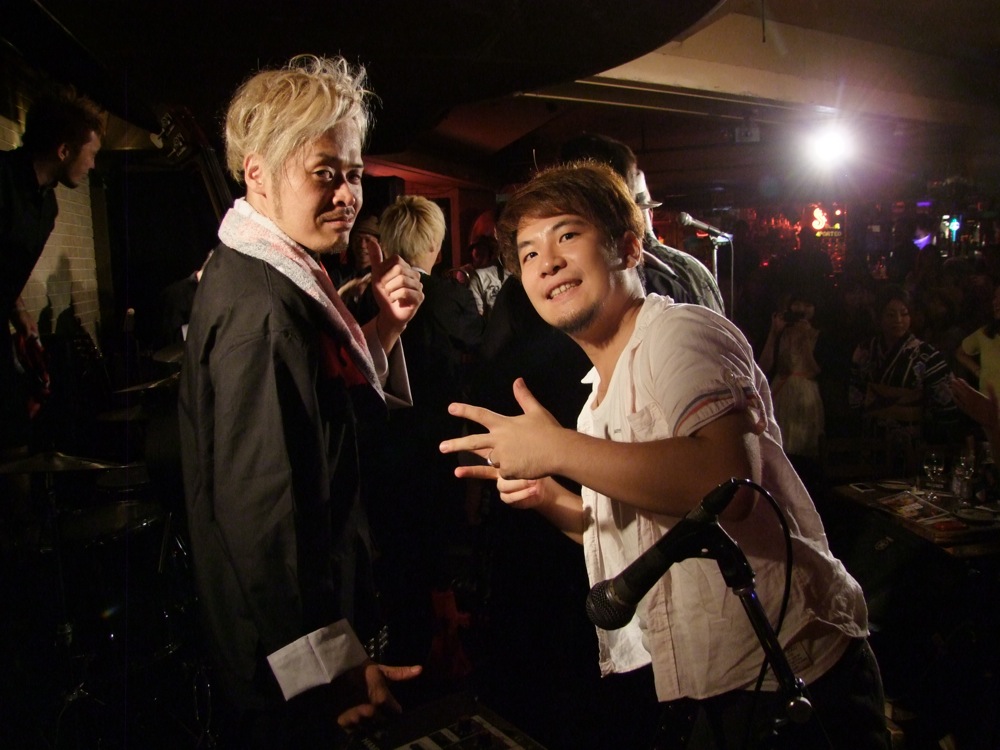 そして後半戦へと突入し、ここでスペシャルな曲をやらせて頂きました。それはカルメラの代表曲である“犬、逃げた”という曲で、実はカルメラの皆さん(リーダーのゴウシ君だけは知っていました…笑)には演奏する事は内緒にしていて、アレンジをしつつも、いきなりステージでやらせて頂いたのです。自分達自身で言ってしまいましたが、大変に上品な仕上がりになったのではないかと思います(逃げても、呼べばすぐに帰ってきそうな、お利口な犬!?…笑)。