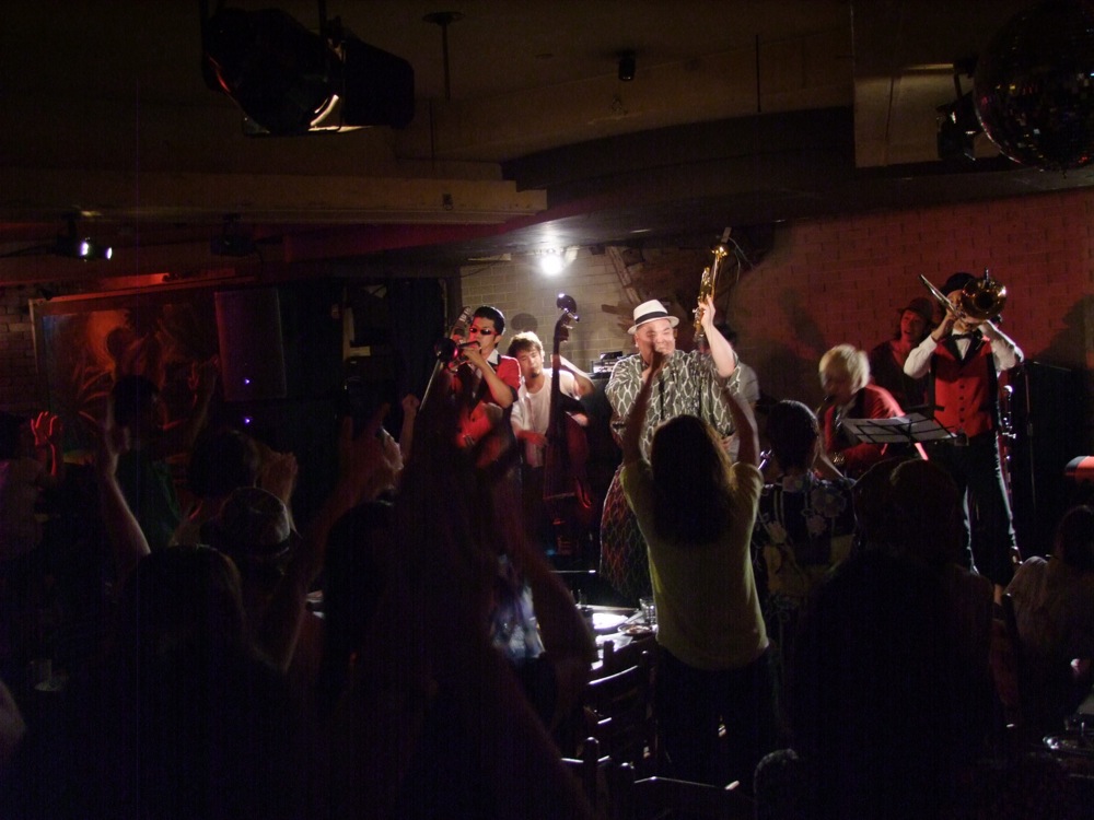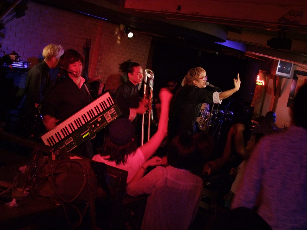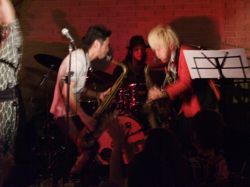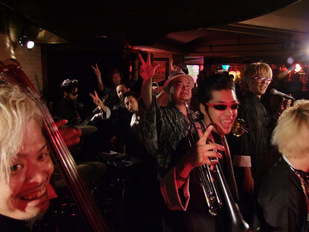 大きな拍手を頂き、最近お馴染みである“Hop!”、そして最後に“Dance 'em All”をお送りしましたが、この最後の曲ではカルメラのホーン隊3人に加わって頂き、豪勢にお届けしていきます。そこでは、サックス同士のバトルや、トランペット同士のバトルも見られ、正にタイトル通りの光景が展開されていきました。こちらもカルメラのホーン隊に触発されて、何だか意地のようなものを見せてしまった感じがありましたが(笑)、楽しい時間でもありました。やっぱり、大勢でステージに上がっているというのは、無条件の楽しさがあるのかもしれませんね。