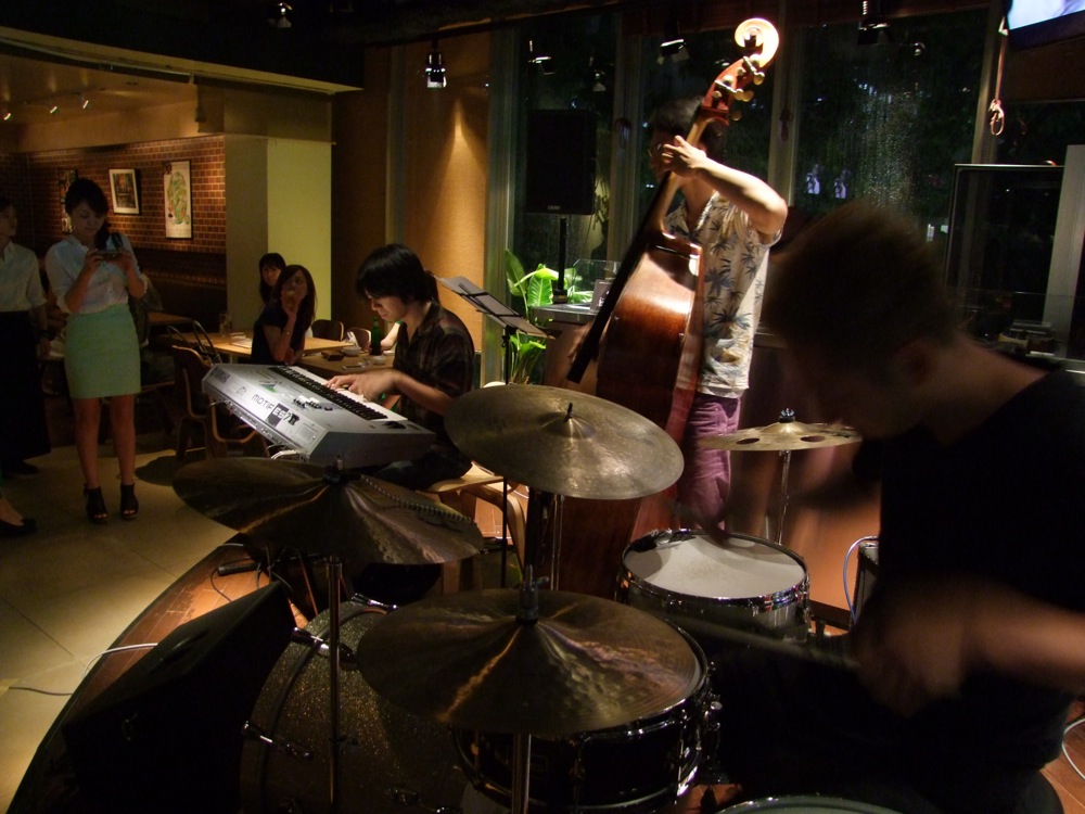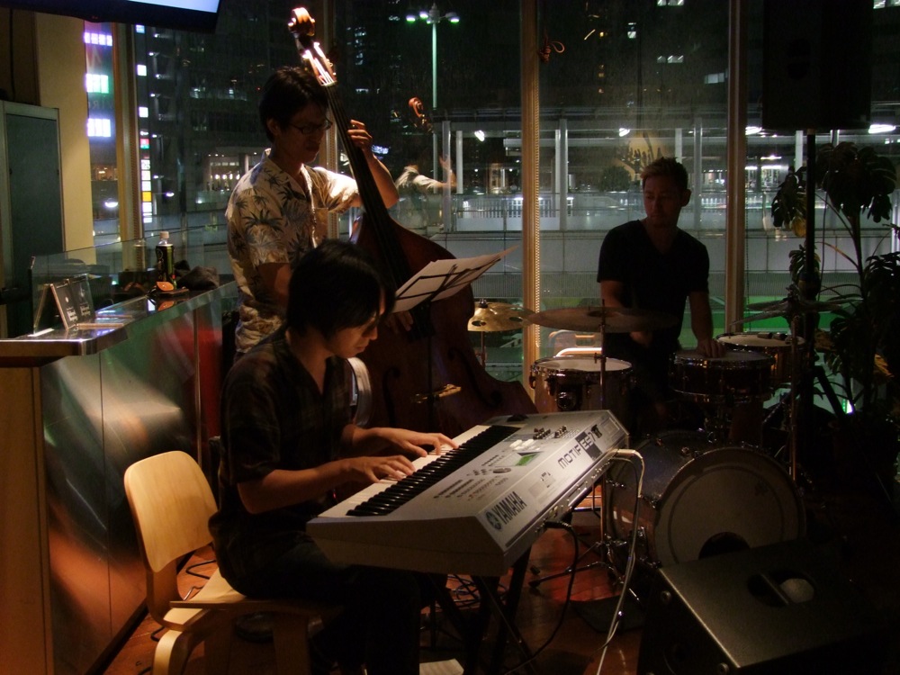この日の演奏は時間的に遅く、1ステージ目が21:30〜、2ステージ目が23:00〜というものでしたが、それでも多くのお客さんに残って頂いたのは嬉しかったです。また、場所柄なのか、遅い時間でも結構お客さんが入ってくる状況でもあり(金曜日というのも良かったのかもしれません…)、沢山の人に耳を傾けて頂けたのも良かったです。CDも何枚か買って頂けましたし、また是非やって下さい!とのお声も沢山頂きました。竹内トリオとしては、こういった不特定多数の方々の中でライブをする機会があまり無いので、今回は新鮮な時間であったと共に、1つのステップアップが図れたライブでもあったと思いました。また、DJ Time がある中でのライブというのも初めてだったので、より可能性を感じられる1日にもなりました。こうした経験をする事で、また活動の幅が広げていきたいものですね。どうもありがとうございました!