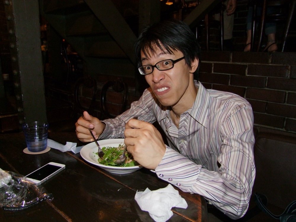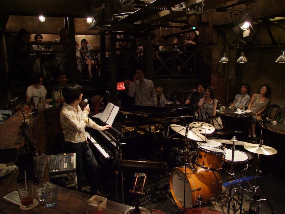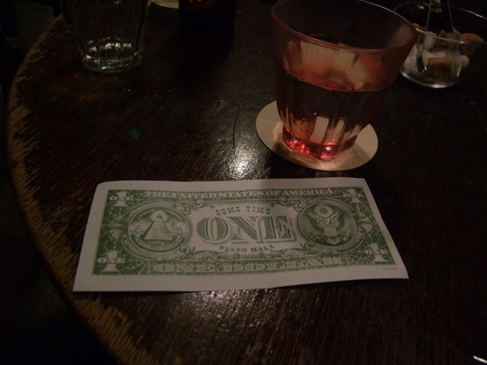 Sometime は自分は初めて来ましたが、ジャズのお店ではあるものの、お店自体にしっかりとお客さんが根付いているお店でもあります。そしてそれはまず、賄いの食事を頂いた時に分かりました。…非常に美味しいのです!…これはレストランとして経営しているだけに非常に重要な事で、それでいてお店の雰囲気も良いので、普通にご飯を食べに Sometime に寄っても良いくらいだと思いました。お店は地下1階(2階?)に位置し、ステージは入り口からまた半階低い所に位置して、ステージを囲むように座席が設定されているのも面白いところです。ステージの奥には更に2層の座席が用意されていて、少し冒険心をくすぐられるような造りも自分好みです。飲み物も沢山ありますし、伝票の裏が1ドル札のデザインになっている(右上写真参照)のも、何だか遊び心を感じるではありませんか(笑)。