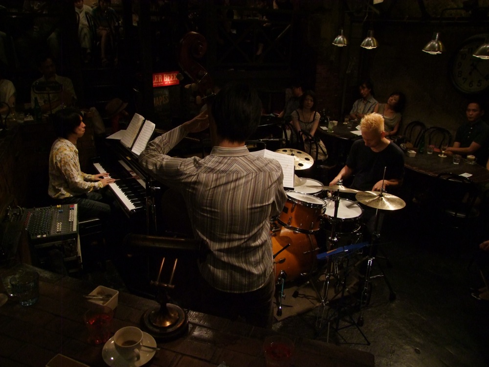 …そして何より、お昼のライブはミュージック・チャージが1000円に設定されているのも大きいでしょう。実際、今回のライブは満席に近い…と書いたのですが、半分以上は自分の知らないお客さんであり(池田君自身のお客さんも多かったと思われますが…)、要は一見様が多いという状況だったのです。気軽にジャズ・ライブが出来る場所で、このような状況というのは、実は有るようでなかなか無い事でもあり、流石、地元と共に歩んできているお店だと思ったものでした。これは、しっかりと自分達トリオの音楽を見せつけなければいけません!…そんな思いでステージに臨んだものでした。