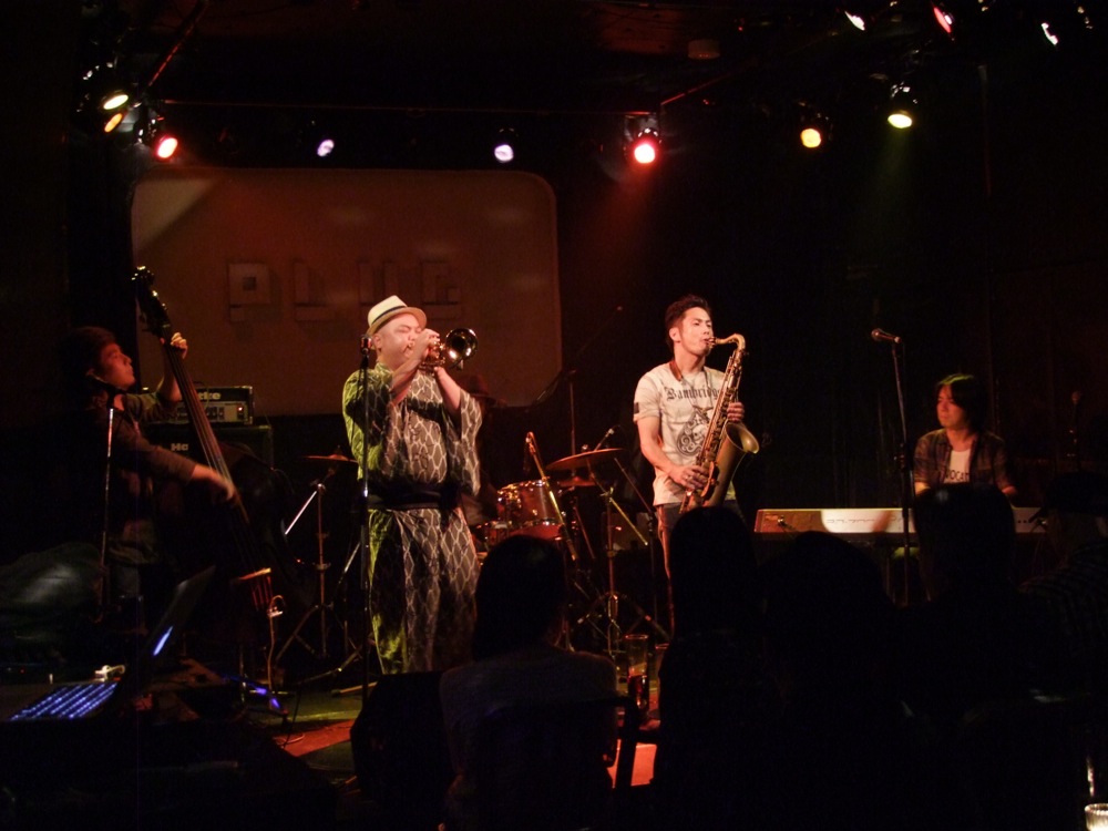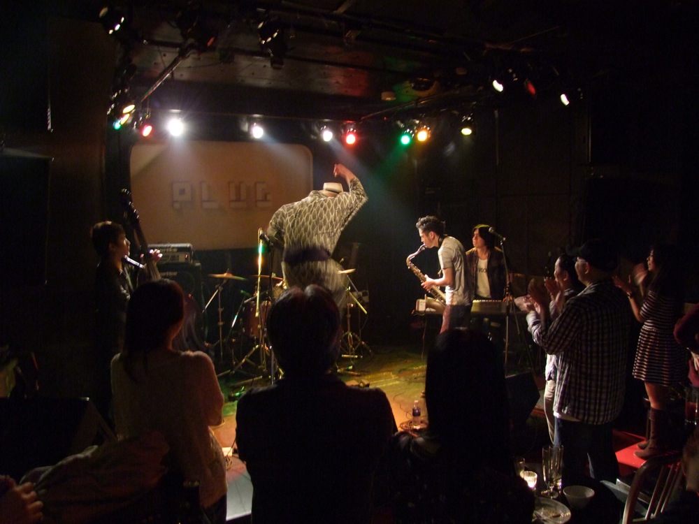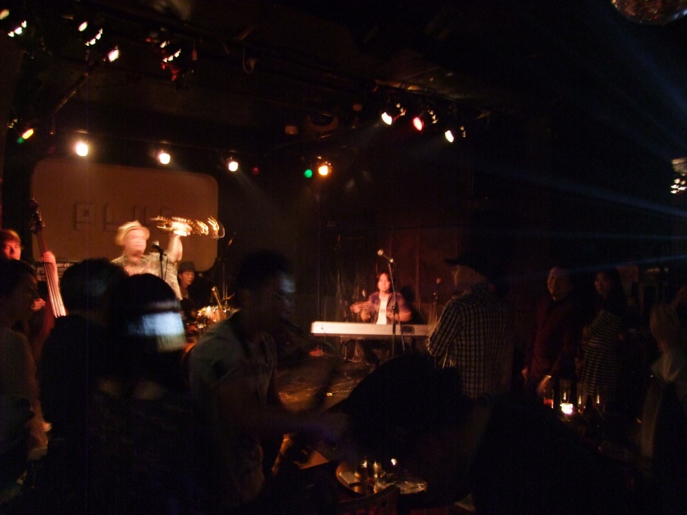 toconoma(右上写真参照)は、自分は今回のライブで初めて知りました。バンド名から察するに、結構アンダーグランドなサウンドを想像していたものですが(笑)、聴いてみると、これがクラブジャズの心地良い雰囲気が提供されていて、予想以上にキャッチーだと思ってしまいました。マイペースに、ただひたすら、その場の音楽を楽しんでいる…という感じでしたが、それが全く嫌味では無く、いつまでも見ていられる感じがありました。
