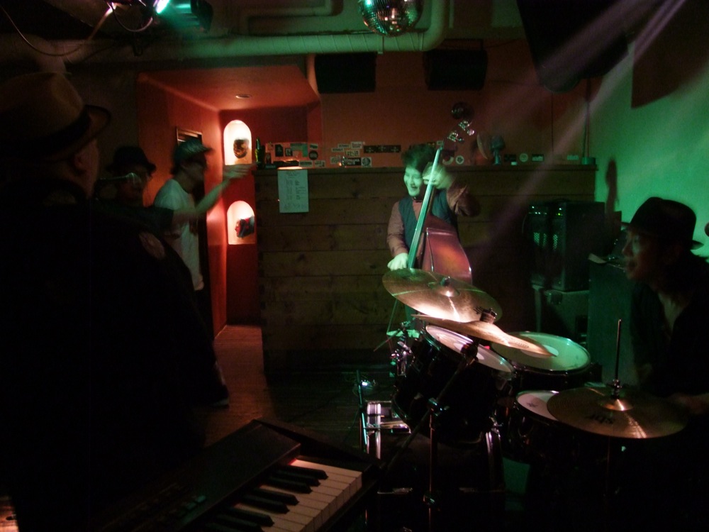 この Tada Night は、渋谷 Under Deer(渋谷 Under Bar と、系列店の関係にもあります)の多田さんという方が行っているイベントであり、今年でなんと10周年を迎えるのだとか。その一発目のイベントという事で自分達も依頼され、演奏する事になったのでした。渋谷 Under Bar 周辺は、深夜という事もあり静ですが、お店に足を踏み込んでみると、そこは熱気と音の渦…という感じで、DJの方も音を鳴らしまくっており、深夜の独特な世界観が既に出来上がっていたものでした。