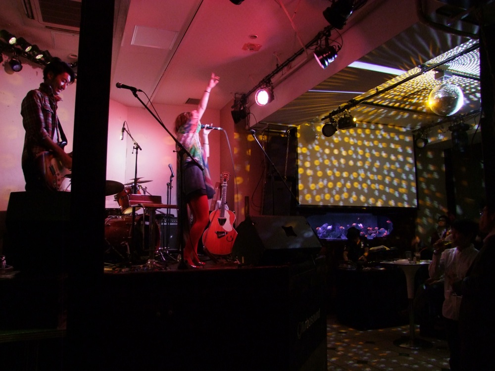最近は個性的な対バン相手を呼び、3マンライブを行う事が多かった彬子さんでしたが、この日も例に漏れず、1バンド目に The Atla's(上写真参照)、そして2バンド目に、ボーカルの松本ラフさんのバンド(下写真参照)と、それぞれ、特にボーカリスト自身が強烈な個性を放ったステージを見せてくれました。
