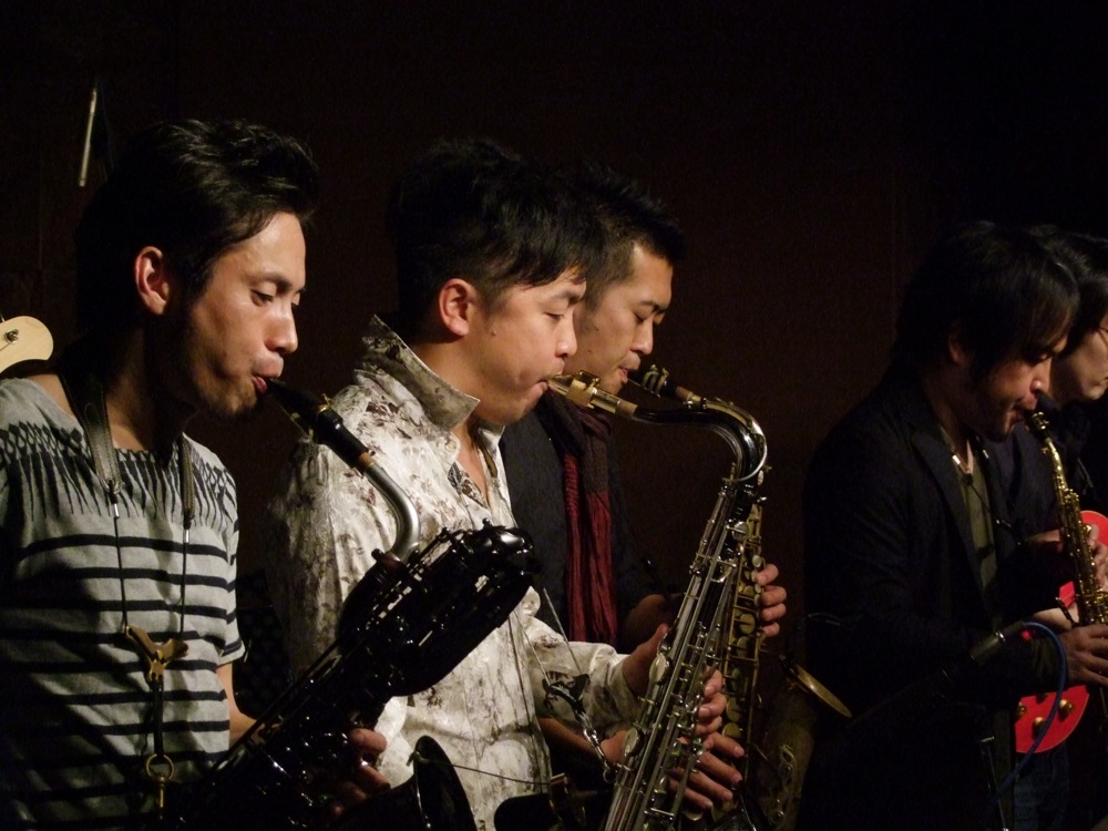 そんな中、今回は新曲もありました。前回〔関谷友貴のいた Generation GAP ライブ参照〕も新曲を披露しましたが、今回もソプラノ・サックスの副田君の書いた曲で、GG では恐らく初と思われる、バリトン・サックスをフィーチャリングした曲だったのが、かなり特徴的だったかもしれません。タイトルは、“Baritone & Bass Fantasy”。正に低音のファンタジー…という感じですが(笑)、イントロしてバリトンのフリー・ソロを聴かせ、それに副田君が渋い掛け声を何度も挟み、…と、何だかチャールズ・ミンガスの“Moanin'”みたいですが、実際に、音資料の参考として、その曲の音源も入っていたので(笑)、参考にしているのは間違い無いでしょう(ちなみに曲名も、どこからか参考にしています…笑)。そして、また新たな GG サウンドが生まれた瞬間だったのではないでしょうか?