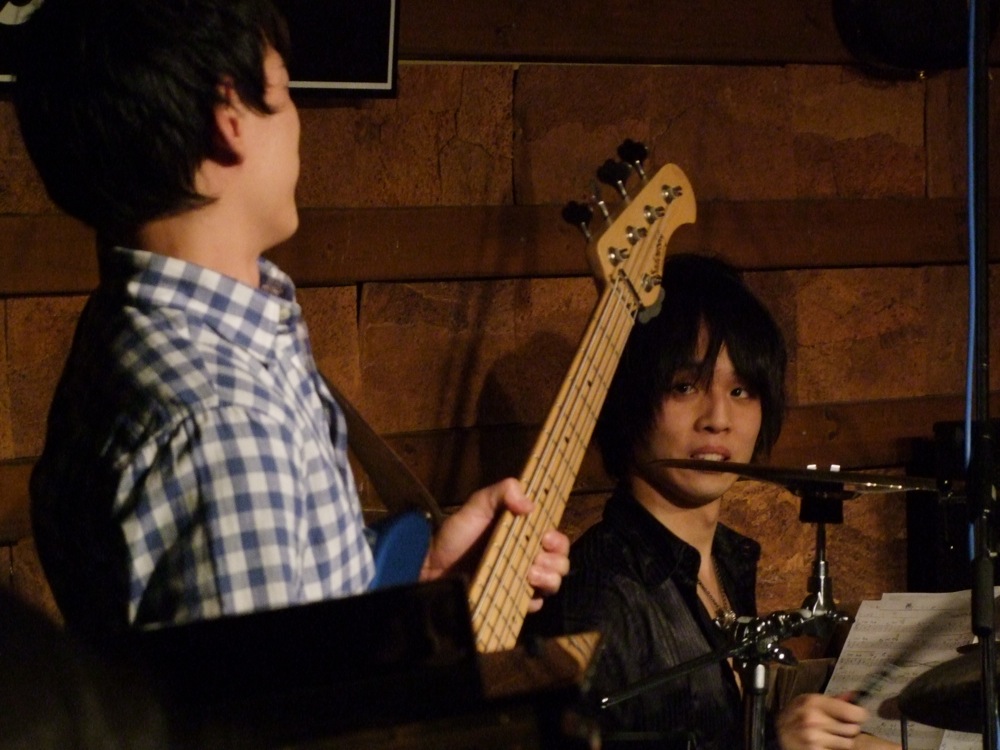 ベースには田中晋吾さんを迎え、ドラムには初めましての山本真央樹君…。彼は年齢が21歳というのですから驚きですが、その実力は素晴らし過ぎるものがあり、堂々とドラムを叩いている様は、こちらのメンバーもどんどんノセられてしまう程でした。こちらが仕掛ければ、あちらも仕掛ける…と、リズム隊の中での音の渦が独特なものにもなっていくのです。それでも母体は GG ならではの楽曲なので、今までの曲がまた異なった雰囲気を漂わせる事にも繋がり、個人的には演奏していて面白かったです。特に、それぞれのソロ・パートの部分の展開は、今までに無いものだったとも思います。