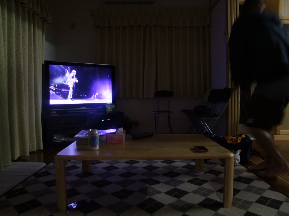 そうして、無事に西仲家別邸に到着。西仲さんとトシさんが会うのは、相当久し振りだったと思います。とりあえずは部屋に入って乾杯をし、どこかどうなってこうなったかは分からないのですが、マイケル・ジャクソンの DVD『THIS IS IT』を皆で見る…という感じになっていたのが面白かったです(笑)。次の日からの学校公演に、期待と不安がありつつも、楽しい沖縄初日になったと思いました。さて、どうなる事やら、、、。