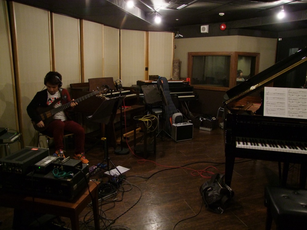 …スタジオは、今までも何度もお世話になっているスタジオ Dede にてで、スタインウェイのピアノを使って最高のクオリティでやらせて頂きました。演奏者にはそれぞれのブースがあり、アレンジを加えつつも、人間味な部分を残して演奏していきます。関谷君も今回はエレキベースを3本用意、ドラムのトシさんも、タムやスネア、バスドラムも口径の異なる物を複数持ってきていて、曲毎にベストなサウンドを作っていきました。