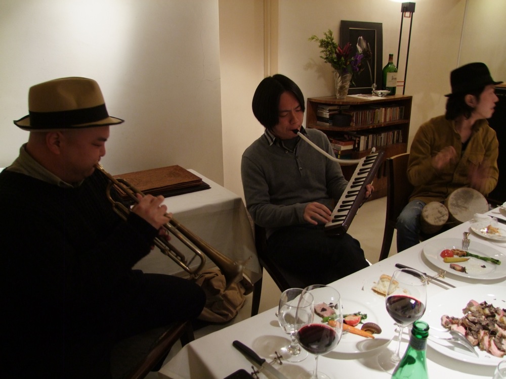 TRI4TH、銀座のレストランを貸し切って忘年会…、いや、夕食を招待された場所で、強引に忘年会という括りにさせた時間でした(笑)。自分は鍵盤ハーモニカを渡され、いつの間にか舞台はセッション時間へ♪…酔っていたせいか、なかなか楽しい時間でした。