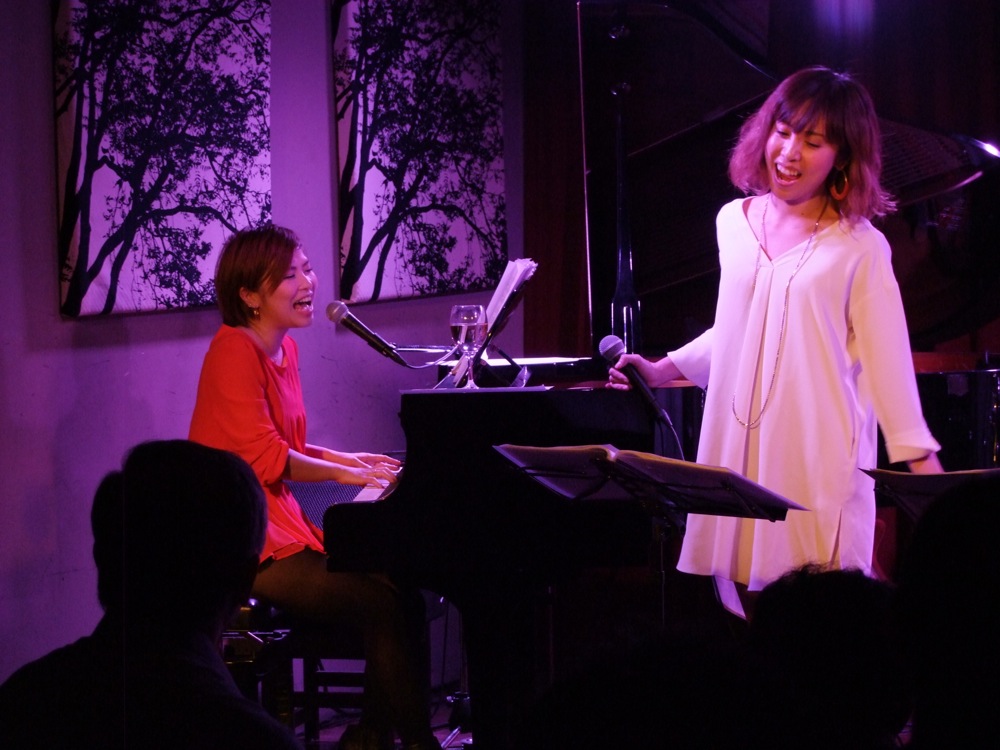 今回は、2人によるワンマンライブです。1ステージ、2ステージと分かれていて、それぞれたっぷりお送りしました。コンセプト的には前回と同じで、要はこの2人は仲が良く、お互いのオリジナル曲を覚えてしまっているくらいなので、それじゃあ2人でお互いの歌を一緒に歌っていこうよ…と、こんな感じなのです(笑)。また、前回はそれぞれがソロで歌う曲も用意されていましたが、今回は全ての曲が、2人で歌うようにアレンジされたもので、また更に仲の良さが際立ったライブになったかもしれません…(笑)。お互い、歌い方も違えばキーも異なるので、それぞれの歌うパートを決めるのは並大抵な事では無さそうな気もしますが、殆どの曲が、今回2人で歌うものとしては初めて披露するものばかりだったので、ここにもまた気合いの側面が見えていたと思います。