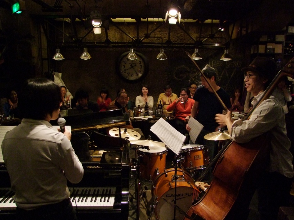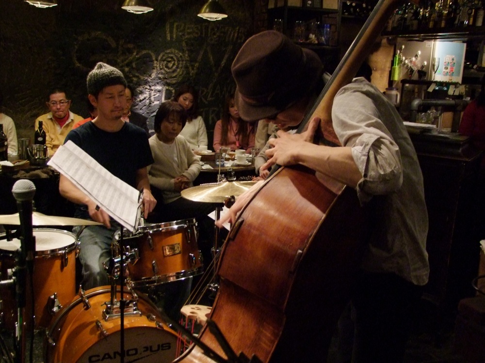 お客さんの入れ替えも多少あったものの、ステージの最初から最後まで、ほぼ満席の店内でのライブ。そして妥協を許さない?メンバーとの音の攻防…。やはりトリオライブは楽しいです。2014年もマイペースではありますが(笑)続けていきますので、どうぞ御声援の程、よろしくお願いします!