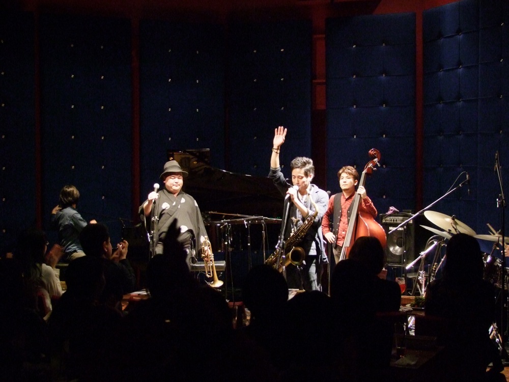 そしてここから佳境となりましたが、新たな試みを盛り込んだ時間にもなりました。TRI4TH は基本は自分達のオリジナル曲をメインとして演奏していくバンドですが、これからのバンド活動の1つとして、ジャズ・スタンダードと呼ばれるものやカバー曲に焦点を当て、それらを自分達なりに解釈してアレンジして演奏するというものをやっていこうという試みです。過去には、それぞれの地方の民謡等をアレンジしてお送りしましたが、その更に1歩進んだものと見ても良いでしょう。あれから更にアレンジ能力は上がっている筈で、音楽的にも豊かなものが作れる自信も出てきている事でしょう。