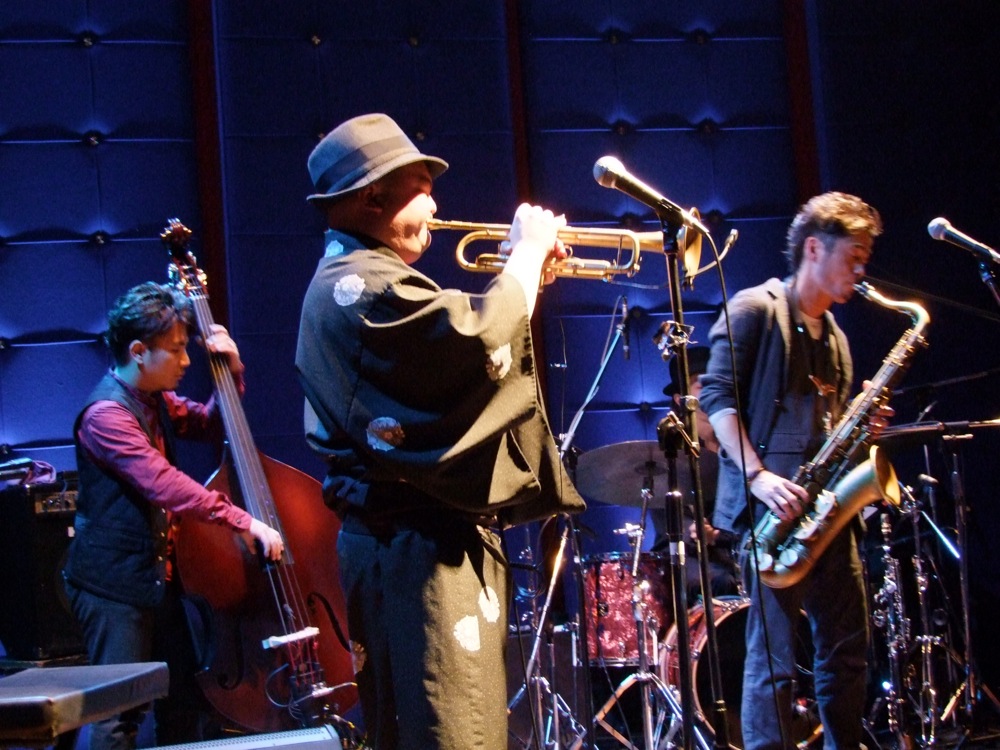 そんな背景を基に今回お送りしたのは、アート・ブレイキー&ジャズ・メッセンジャーズでも非常に有名な“Moanin'”。メロディこそ踏襲しているものの、リズムはダンスビートを基本とし、踊れるジャズを目指してアレンジしたものを披露しました。セットリスト中での佳境に持ってきたのも、そんな自信の現れかもしれません。そこからお馴染みの曲“Yellow Butterfly”へと繋げ、1ステージ目の本編は終了となりました。