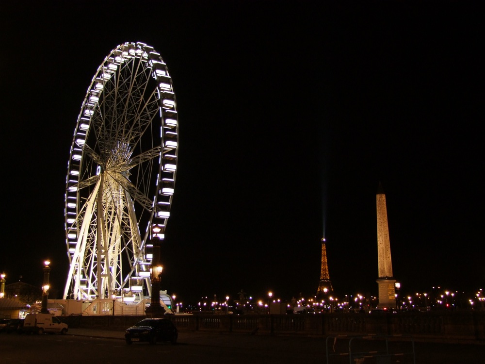 パリは4度目の訪問となりましたが、1回目は2月後半、2、3回目が夏の時期となっていたので、11月〜2月中旬だけに現れる移動式観覧車(左下写真参照)は今回初めて見る事が出来ました。場所的に、フランス革命時には、ルイ16世やマリー・アントワネットの処刑の場ともなったコンコルド広場に建てられてあるのが凄いですが(ちなみに、ここにあるオベリスクには何年間前のエイズ防止キャンペーンで、巨大なコンドームが被された事があるらしいです…やはりフランスの発想は凄い…)、せっかくなので乗ってみました。速さは日本の3倍くらいあり、3回転ぐらいしてくれる等、どちらかというとアトラクション系の乗り物なのかもしれません。この観覧車はフランス語で“Grande Roue de Paris”。つまり、パリの大きな輪…という意味になるなので、“観覧”的な要素がそもそも入っていないと思われます(実際、乗っている最中に写真を撮るのは至難の業でした…笑)。ここからはシャンゼリゼ通り越しに凱旋門が見え、一直線上に伸びるフランス式の美学を感じ取れる場所でもありました。