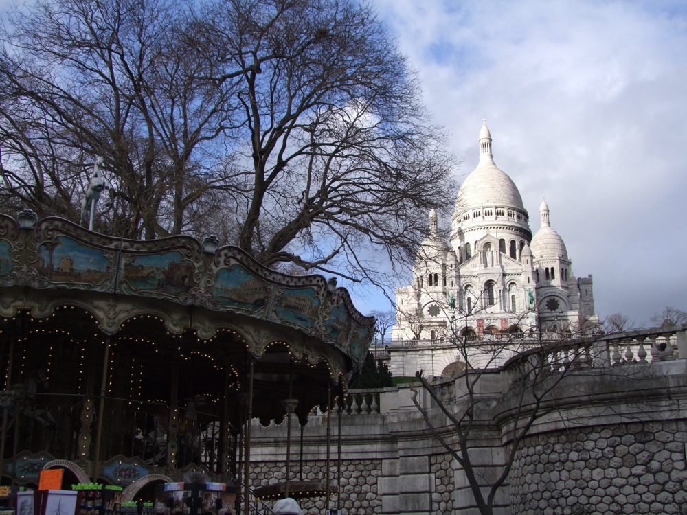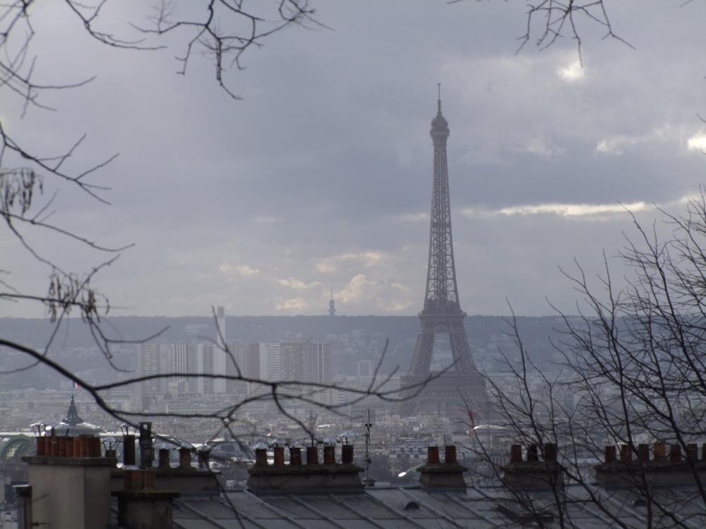 また、モンマルトルも何度となく行っている地域ですが、やはり今回も寄ってしまいました。小高い丘の上に建つサクレ・クール寺院(左下写真参照)を初めとして、どこを切り取っても絵になる地域…。ピカソやモディリアーニ等の芸術家が好んで住んだ場所というのも窺えます…。丘から見えたエッフェル塔(右下写真参照)も、またパリならではの光景と言えるでしょう。