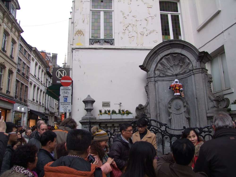今回の目的地はパリでしたが、そこを拠点に、お隣の国であるベルギーのブリュッセルまで日帰りで足を伸ばしてみました。今まで乗りたかった国際特急タリス(左上写真参照)に乗車し、ブリュッセルまではノンストップで1時間20分!…ある意味、フランスの他の街に行くより早いです。世界で最も美しい広場と言われるグラン=プラス(右上写真参照)や小便小僧(下写真参照)等、有名な所を中心に見て回りました(壁に描かれていた小便小僧は、何だかワルい感じでしたね…笑)。