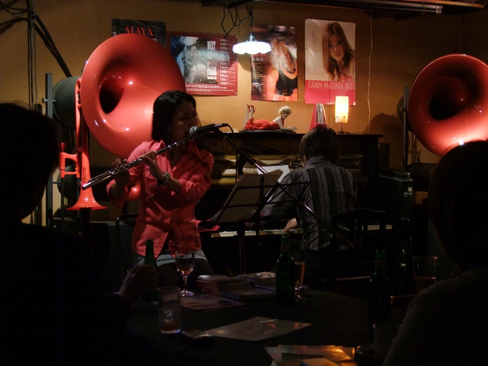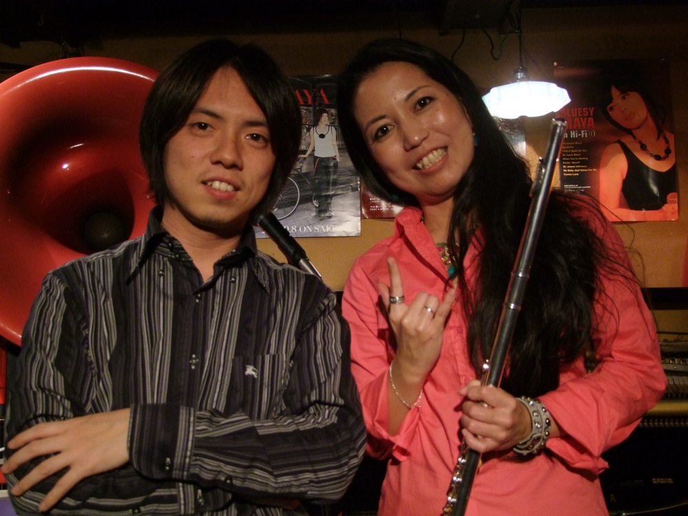 全部で2ステージ行われた今回のライブでしたが、1ステージ目ではジャズ・スタンダードを多めに、そして2ステージ目には、西仲さんのオリジナル曲を中心にお送りさせて頂きました。1曲目が“Just Friends”だったのは、何だか珍しい感じもありましたが、1ステージ目の最後の曲は、沖縄のスタンダード曲である“てぃんさぐぬ花”を持ってくる等、やはり自分達らしさも忘れてはいません…。ジャズであり、沖縄出身のフルーティスとであるという事を誇りに見せられた1ステージだったのではないかと思います。