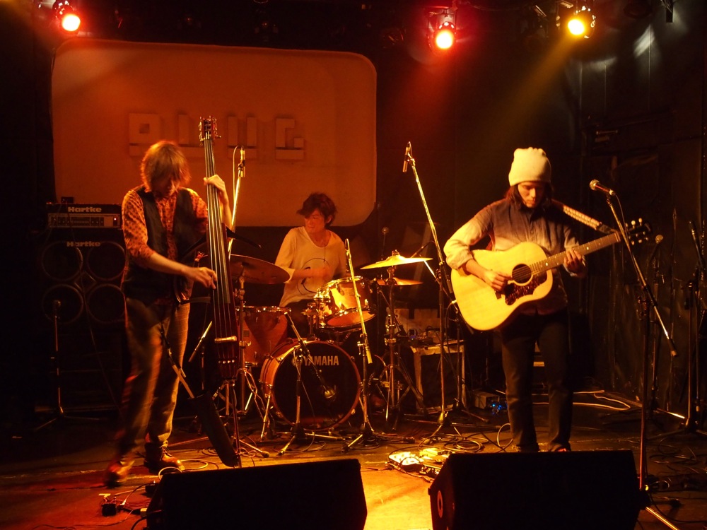 まずは1バンド目に alosotimu(アロソティム)。名前の由来が umitosola(海と空)というこのバンドは、アコースティック・ギタートリオという編成ながら、ジャズというジャンルには簡単に一括りに出来ない、多くの要素を注ぎ込んだサウンドが特徴的でした。御自分のギターのフレーズを打ち込みとして流し、その上に重ねて演奏する世界もまたお洒落で、そして何より、ギターの音色の綺麗さが印象に残りました。