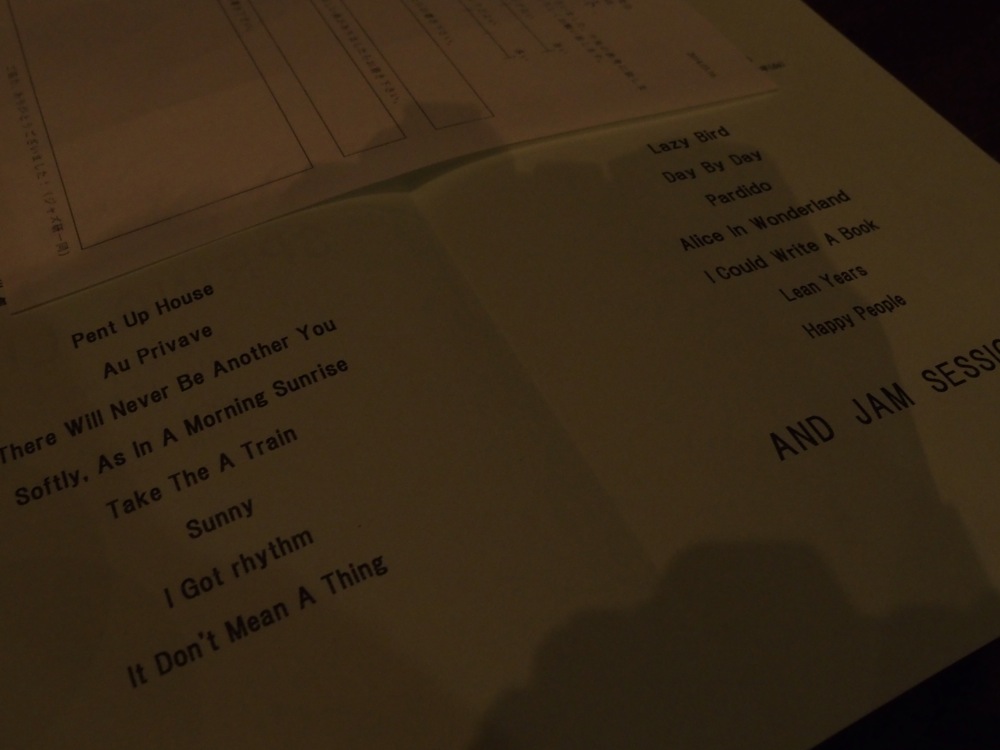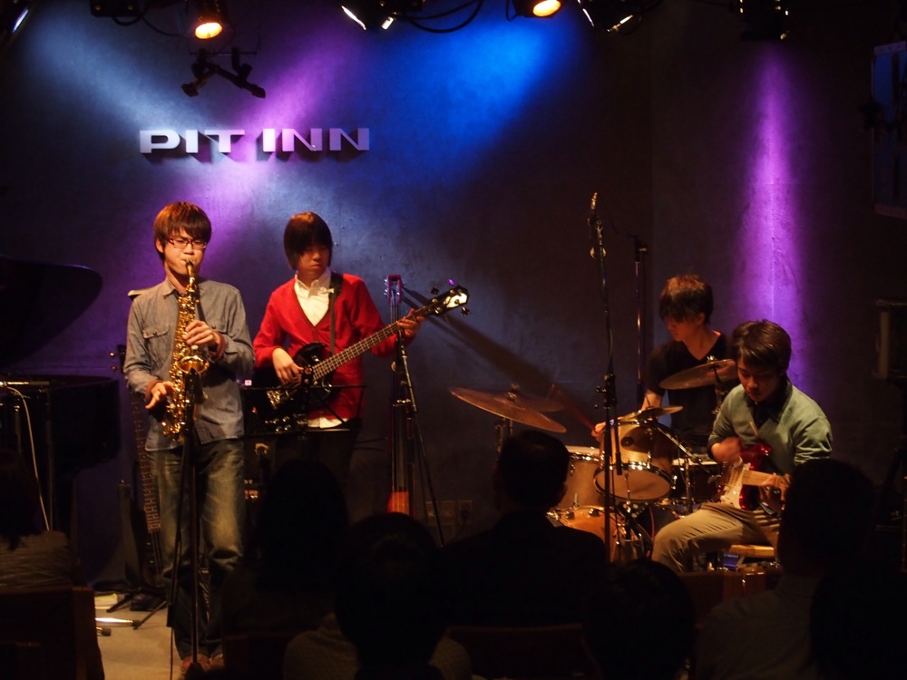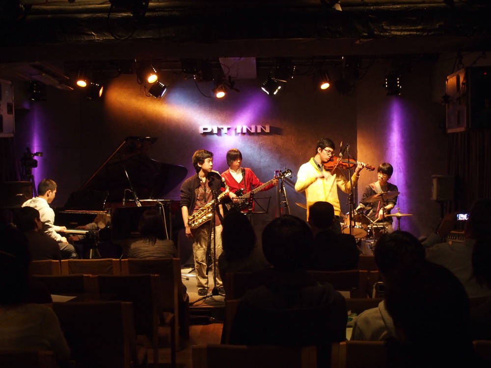 今回の会場は新宿 PIT INN…。都内のジャズライブハウスでは代名詞的な存在であり、ここで高校生の頃からステージに立てるなんて、羨ましい意外の何物でもありませんでしたが(笑)、ステージ上で演奏している生徒達を見ると、学校のスタジオでで見る姿とはまた違って?何だか頼もしく、そして凛々しくもあり、コーチとしても嬉しい思いが生まれてきてしまうのでした。部員の人数もそれなりにいるので、演奏曲数もなかなかのものとなっていましたが、更なる曲目のバラエティさを期待したいものです。その辺りは、自分の力も積極的に貸し出すべきなのかもしれませんが…。