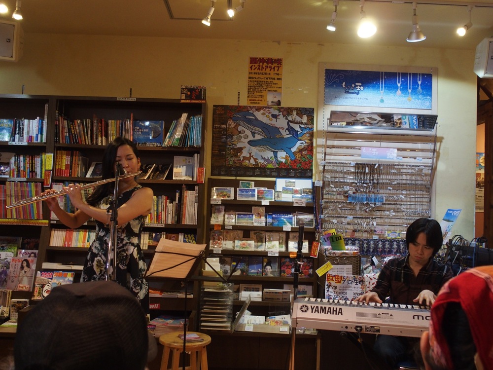 今回のツアーの初日とも言える3月22日(土)は銀座わしたショップにて、デュオ編成でお送りしました。この日が西仲さんとの今年初のライブとなりましたが、場所も場所だけに、沖縄の空気をそのままに表現でき、オリジナル性が溢れるライブになったのではないかと思います。いつもは時間オーバー目にお送りしてしまっているので、この日は曲数を少なめにし、1曲1曲に余裕を持たせるようにセットリストを組んだのですが、結局アンコールを頂き、そしてまさかのダブル・アンンコールまで突入してしまったので、良い意味で、結果的に非常に盛り沢山なライブになったと思いました。お客さんとの意志の共有が、良い方向に働いたのかもしれません。