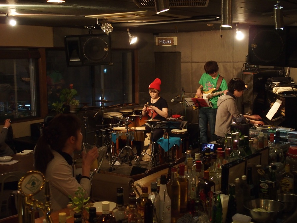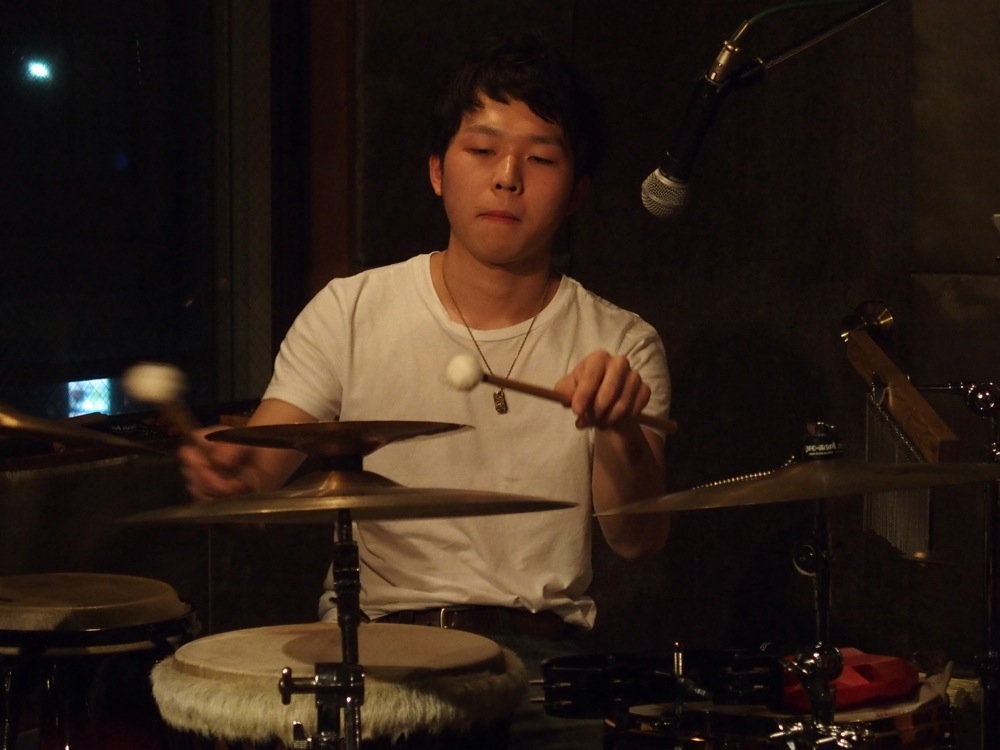 今回は、長めの1ステージのみの演奏となりましたが、自分達の前にオープニング・アクトとして、ミキヤがセッションの場で知り合ったという、パーカッションの木川保奈美さんが自身のトリオで出演してくれていました。メンバーは、自分や池田君より全然若い方達でしたが、武蔵野音大や、洗足学園の出身だそうで、共通の知り合いが既に何人か居て面白かったです。やはり音楽の世界は狭いのです。