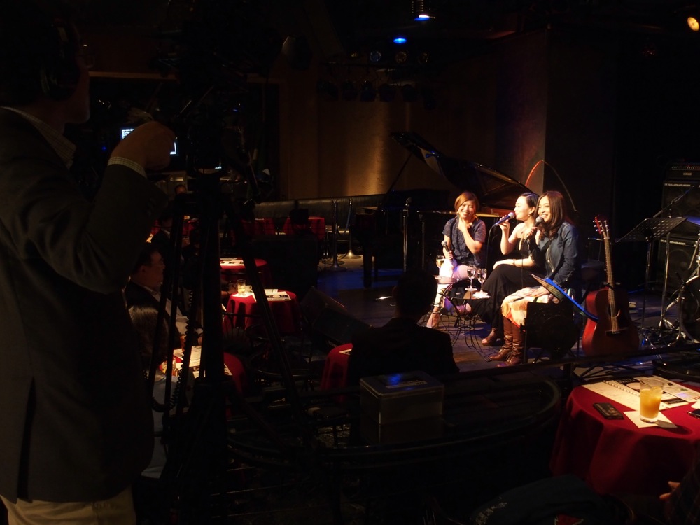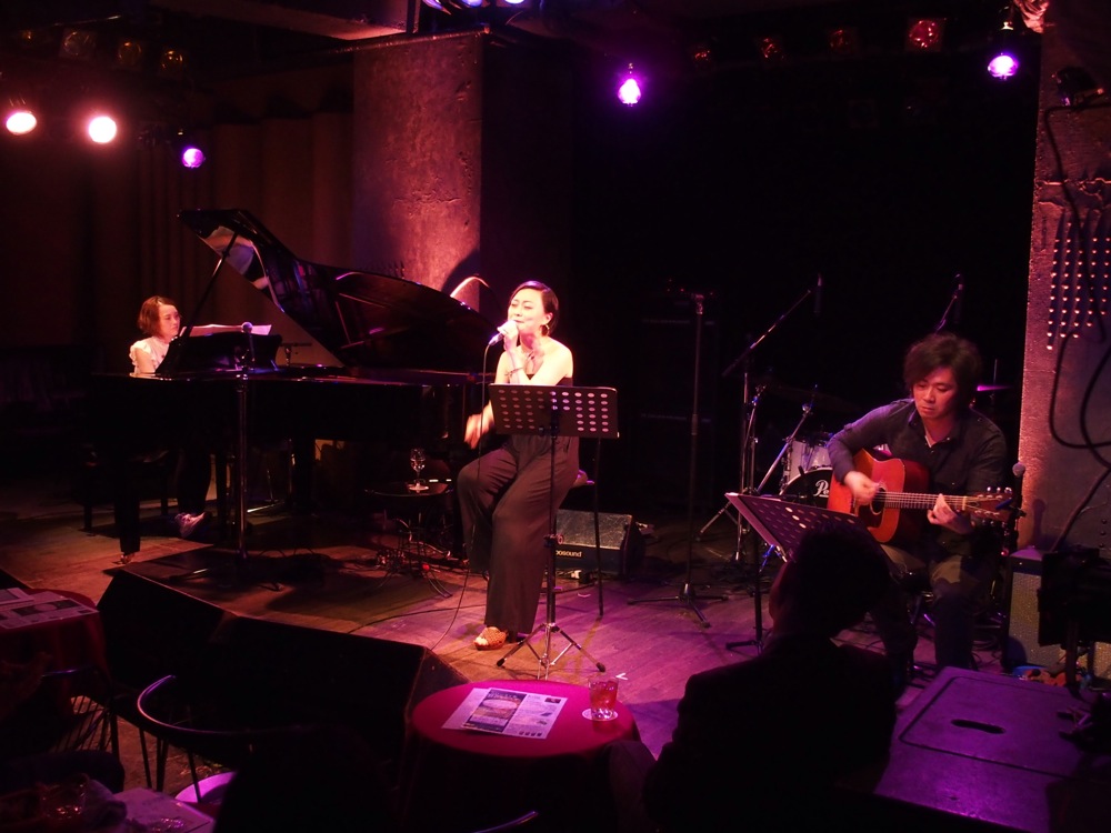 それは最初のオープニングというコーナーで明らかになりました。これは、今回の出演バンドのボーカリストである、黒崎ジュンコさん、Usshy さん、そして彬子さんの3人全員がステージに出てくる時間ではあるのですが、特に歌を歌うわけではなく、座りながら、ただただトークを続けるという、ある意味で前代未聞の時間が流れていたのでした(笑)。それぞれの前にはお水が置かれ(彬子さんだけ白ワインでしたが…笑)、長い時間になる事を伺わせたものでしたが、それよりもこの3人の個性力の強い事強い事…(笑)。最初は恐らくお互いに探り探りな部分がありつつも、それでもちゃんと3人の世界観にまとめる等、成程、何かしら皆で通じ合う部分があるのかもしれません。そのまま、黒崎さん、そして Usshy さんの出番へと続くも、どこかでそういった世界観を匂わせるようなステージになっていたのは、やはりこのイベントのタイトルである“春歌酒党話参会”の良き協力者である…という部分が大きかったのでもありましょう。