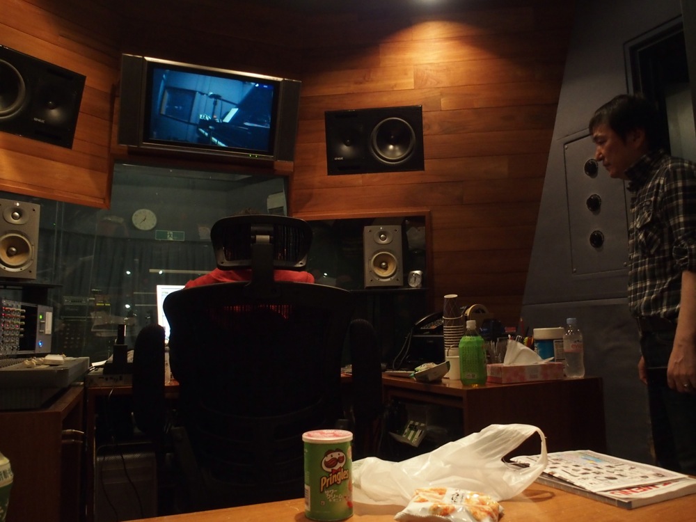 吉祥寺 Leda スタジオは1作目〔丸本達也レコーディング参照〕、2作目〔丸本達也、2作目のレコーディング参照〕でも使っているスタジオで、自分達も既に勝手が分かっている場所でもありますが、今回も今まで同様、深夜の0:00〜朝の5:00というスケジュールで、過酷にやらせて頂きました(笑)。