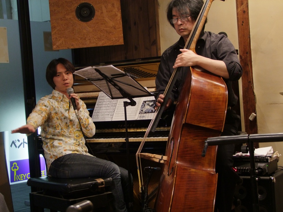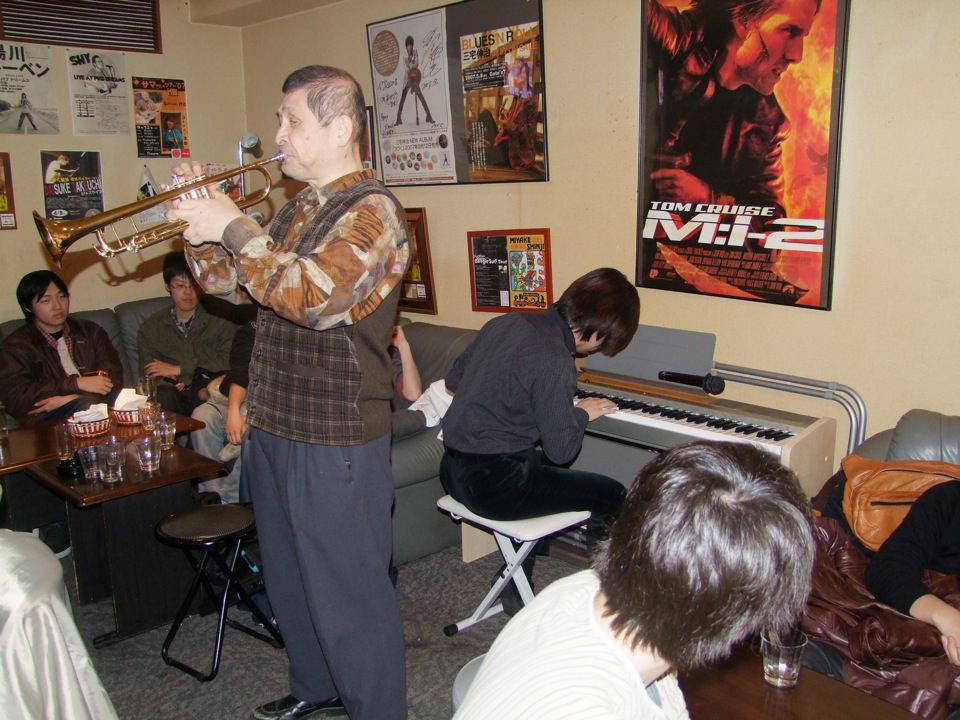 ライブは好きにやって良い…とマスターの意向を聞きつつ(笑)、やはりツアー初日なので、それなりの構成をもって臨みたいところではありました。また、今回も全盲のトランペッターである小倉久司さんにゲストでお越し頂き、ステージの半分くらいを共演という形で演奏させて頂きました。