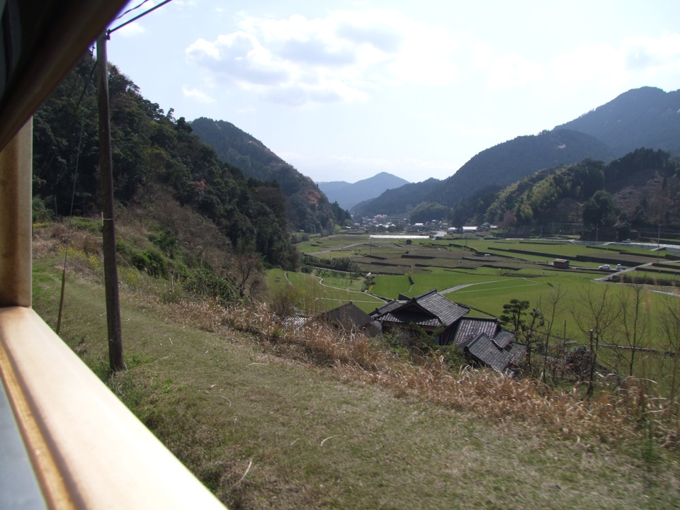 しかし、お腹の満足度とも相まって、ここでも眠気が襲ってきてしまいました。先程の山口線程ではありませんでしたが、やはり行程の半分くらいは眠ってしまっていたかもしれません…。車両もロングシートのものだったので、窓を背にして座っているのが億劫だった事も無関係ではないと思いますが、また惜しい事をしてしまいました…。天気が良ければもう少しは…と、一応言い訳程度の事を書き留めておきたいと思います(笑)。