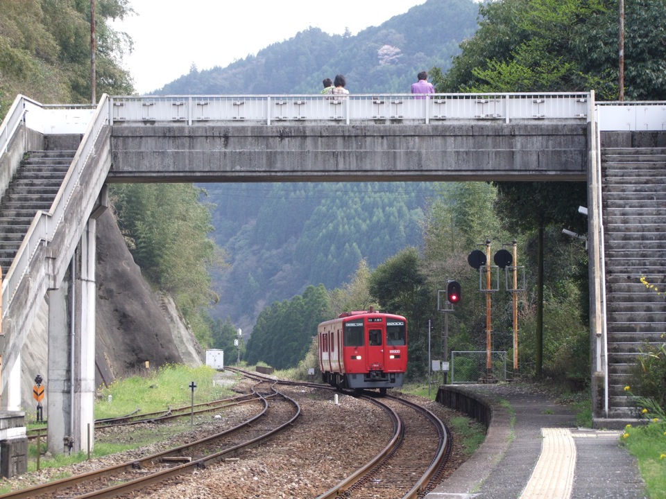 先程、家の周りは集落があって…と書きましたが、集落があるのはこの辺りだけで、車を少し走らせてしまうと、畑が広がっていく感じになってしまいました。ここは、山と山の間に挟まれたような土地で、川に沿って集落が点在しているのでしょう。その道を下っていくと、いきなり巨大な高速道路の橋梁が見えてきて驚かされますが、そうなってくると鉄道も近くを走ってきているのが分かります。ここはJR久大本線という路線が走っていて、最寄り駅は恵良という駅ですが、主要駅となると、豊後森という駅が近いようです。例の温泉も、どうやらそちらの方角にあるようでした。