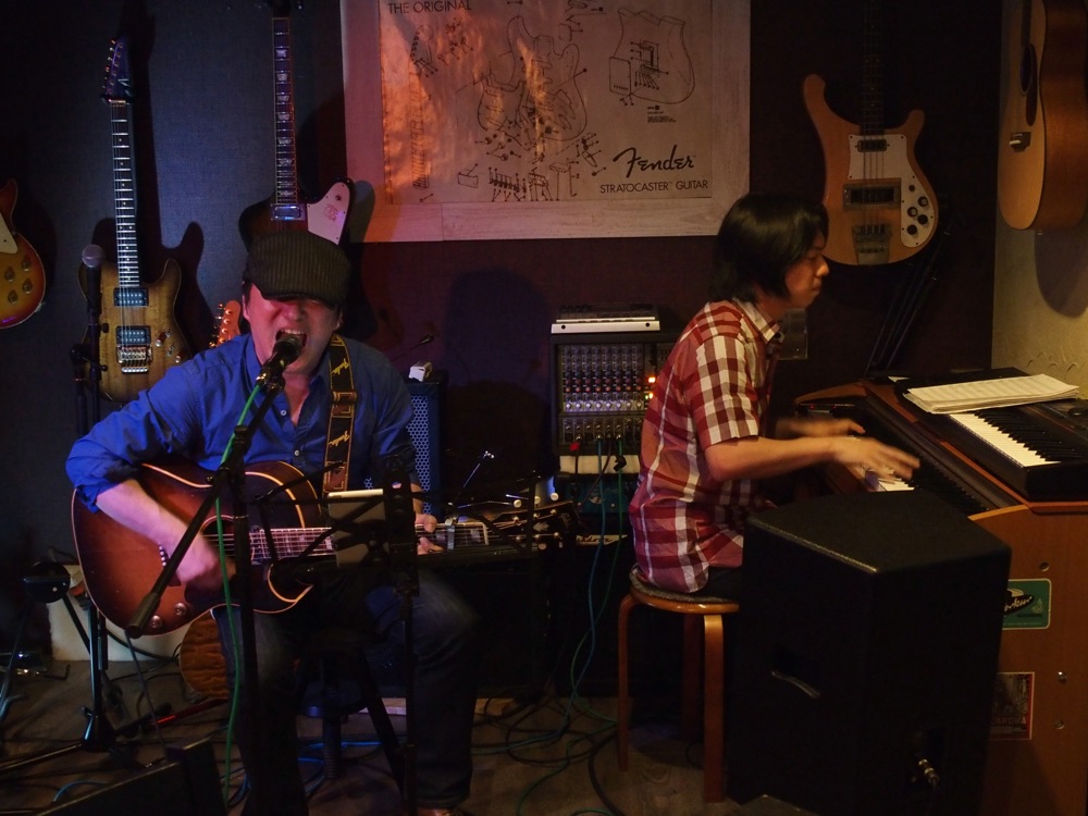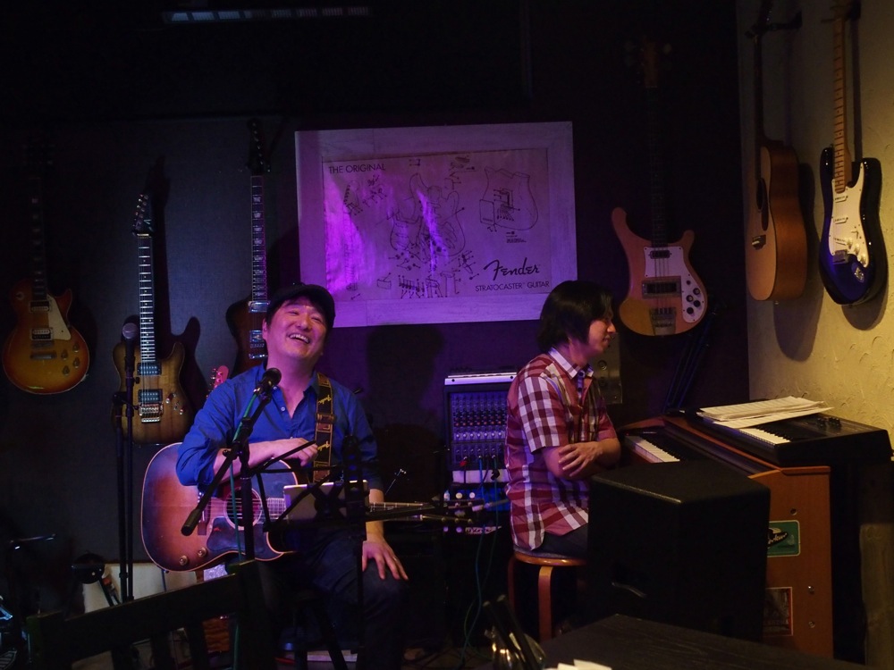 …と、そんな感じで始まった今回のライブでしたが、丸本さんとは、東京ではいつも吉祥寺の Manda-la 2 で一緒にやらせて頂く事が多いので、今回のような状況はだいぶ新鮮に感じました。しかも、自分達だけのステージで全2ステージやりますし、また、カバー曲を多めに設定したのも目新しかったように思います。