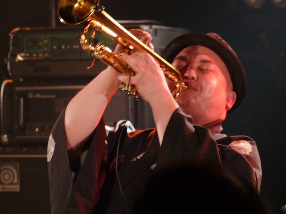 1曲目から既にお客さんの心は掴んでおり、会場も既に大盛り上がり状態です。掛け声は上がりますし、手拍子は勿論、皆で身体を揺らして、一体感という言葉に包まれています。ステージの途中には JABBERLOOP から管楽器の2人が参加して一緒になって演奏し、更なる盛り上がりを見せていました。流石でした。