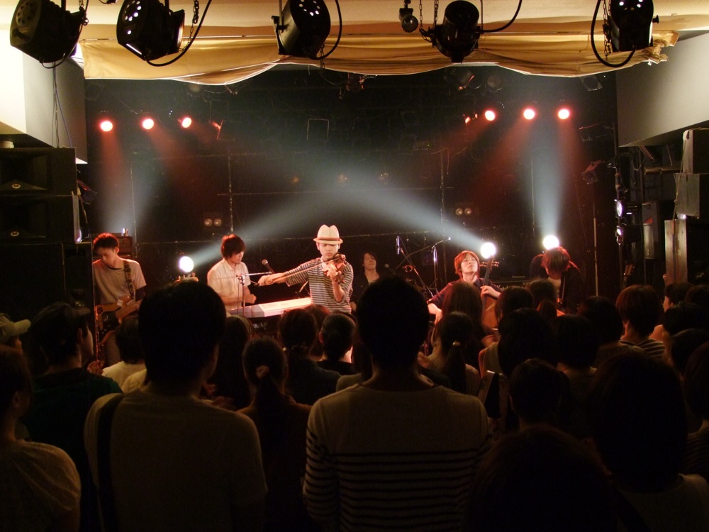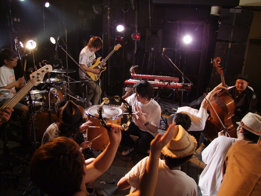 そして、いよいよ本編に入るわけですが、まずはソノダバンドからの出番です。ソノダバンドは6人編成のインストバンドで、バイオリンやチェロをフロントに置いているのが特徴と言えますが、リーダーの園田君がキーボード担当なので、ステージ配置もなかなか特徴的と言えるかもしれません。そして、バイオリンやチェロ…と聞くと、物静かな感じかと思うかもしれないのですが、それよりも相当幅広く、キャッチー且つアゲアゲな曲も多く、むしろバイオリンとチェロの表現の幅を広げているバンドとも思えました。