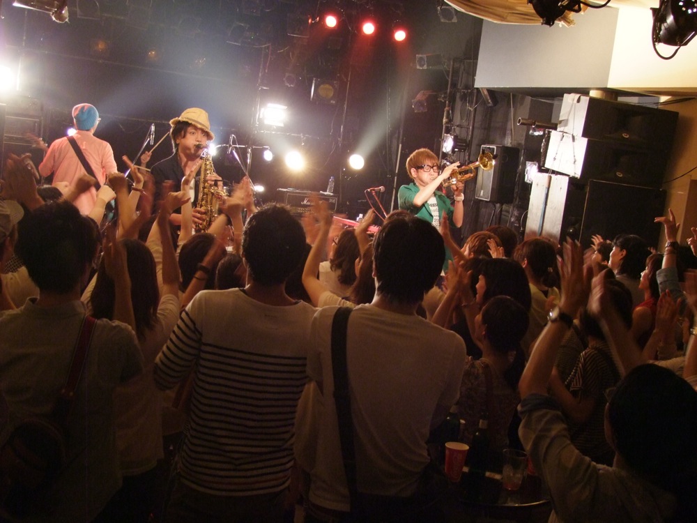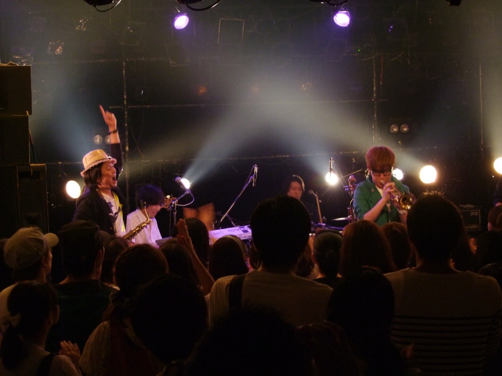 最近の新曲である“Hop!”、“Volare Via”は、やはりこの時点で皆さんに知って貰いたかった曲でもあったので、必須として(笑)、PV曲としてもお馴染みの“TRY AHEAD”も攻め攻めの内容でお送りしていきます。そして、最後には勿論“Dance 'em All”で、皆で盛り上がって終了させました。“Dance 'em All”は、いつもより長めにソロをとったり、トランペットとドラムで掛け合い等をして、盛り沢山でお送りしたのですが、楽しくあっという間に時間が経ってしまった感じがありました。これこそ、充実したステージの証でしょう…。精一杯、第一陣の出番の役目を果たせたと思いました!