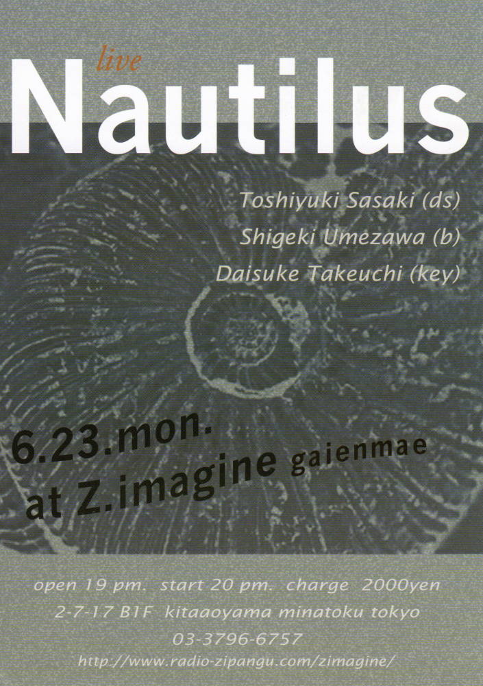 Member…≪Nautilus≫(Ds)佐々木俊之、(Key,Pf)竹内大輔、(B)梅沢茂樹