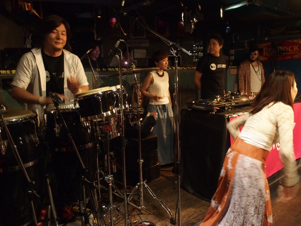 …そして順番は前後しますが、TRI4TH は今回、3バンド目の出番となりました。a-bridge が提供してくれたフードスペース(左上写真参照)を楽しみながら、自分達のテンションも最高のものへと押し上げ(笑)、タカオさんのセクシーショットと共に?スタートです。