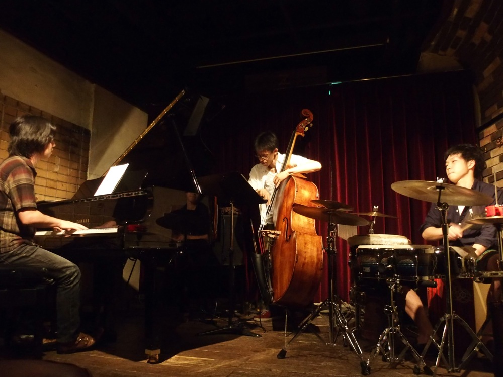 …それこそ、色々なタイプの曲があったと思います。ただ、それぞれの曲のアレンジを練っていく上で、ミキヤの中では色々と試行錯誤して臨んだライブだったとは思うのですが、結局見所はそれぞれのインタープレイにあったのではないかと思います。演奏の中で、恐らく予定通りにいかなかった箇所もあったとは思うのですが、それぞれの持ち前の?経験で、良い流れに変化させていく事が出来ました。その部分自体を練習する事は出来ませんが、何度か一緒にリハーサルを重ねる事で、皆でバランスを合わせるという、共通した意識を持たせる事に成功し得たのではないかと思います…。目標と結果はズレているかもしれませんが(笑)、結果的には良い方向になっているのは確かです。引き続き、リハーサルの時間を大切にしていきたいものですね。