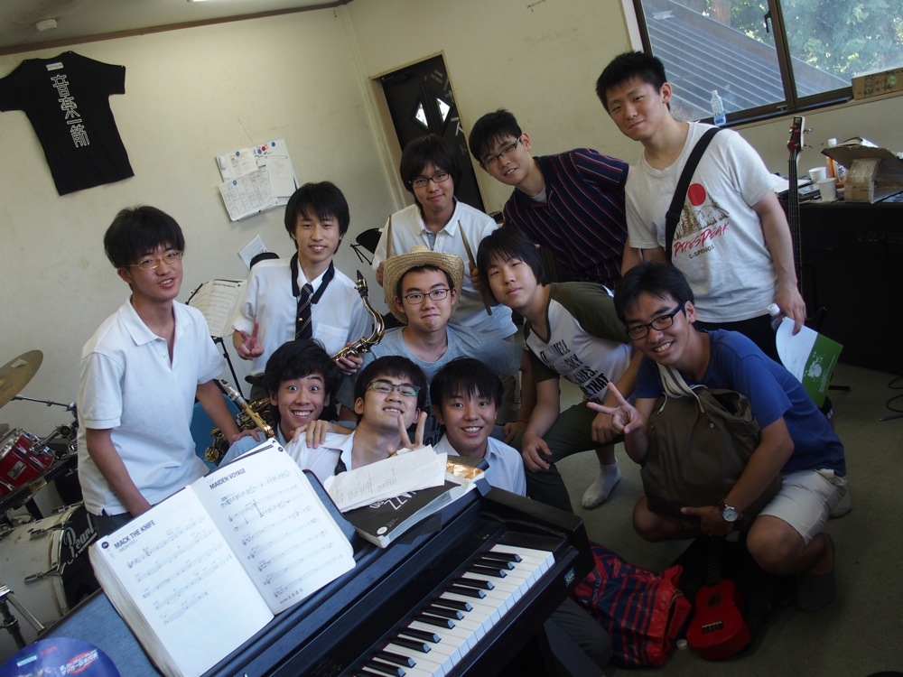 写真は、この日に部室でコーチをさせて頂いた、2年生中心の生徒達です。この同時間帯に、3年生達は会場で結果発表を聞いていたのかもしれません。恐らく、来年度にジャズ研究会の参戦があるとしたら、彼等が中心となるバンドになる事は間違い無いと思いますが、今からその事を自分が楽しみにしていると、少々プレッシャーを感じてしまうでしょうか(笑)?