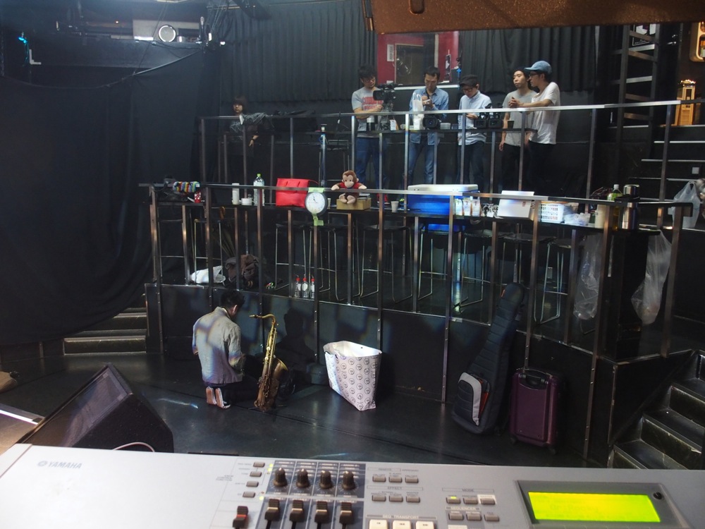 2日間とも、昼夜2回公演というスケジュールになっていたので、今回で計4回の公演が行われた事になります。勿論、その準備も入念に行われ、選曲の段階から考えると2〜3ヶ月に及ぶ大プロジェクトだったという事が出来ると思います…。バンドのメンバーと音を合わせたのも、今から約1ヶ月前の事であり、その後も何度かスタジオに入り、今月の頭には、本番を想定した会場(渋谷 Glad)でのリハーサルも行われた程でした(左上写真参照)。