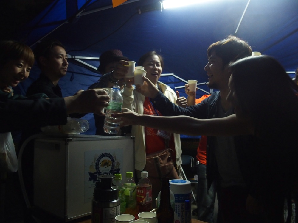 ライブも盛り上がって無事終了!…CDサイン会の後には、ひとまずそのテント内で簡易的に乾杯を行います♪…これがまた至福の時間だったりするわけです。多くのスタッフの方に動いて頂き、自分達はこうして気持ち良く演奏出来るというのは、本当に有り難い事です。黒船は本日のみのステージですが、にぎわいフェスタ自体は、本日の11日(土)と明日の12日(日)の2日間行われ、明日もきっと盛り上がる事でしょう。恐らく天気も大丈夫そうですし、是非とも足を運んで頂ければと思います!
