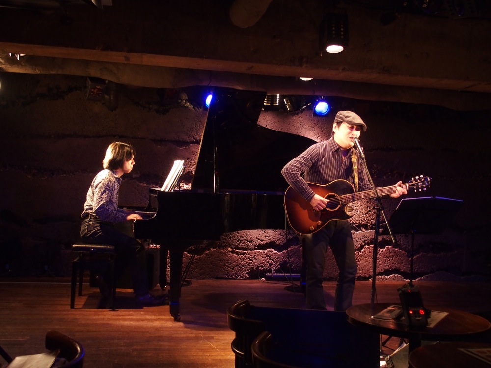 また、新しいDS曲も勿論入れました。その曲は、過去に一度だけ演奏した“Shine”という曲でして、それもまたピアノアレンジを加えて楽しく演奏したのですが、更なる見所としては、そのまま次の“優しい人には適わない”という曲に繋げて演奏した事でしょう。これは以前DSでも取り上げた曲ですが、今回は更にアレンジを加え、しかも曲の構成も変えたりして、正に今回だけのアレンジを施してお送りしたのです。実はこういったアレンジというのは、その殆どが当日の本番直前に行われるリハーサルの限られた時間で作っていきます。一応、それなりのアイデアは持ってスタジオに入るのですが、実際に2人で音を一緒に出すのは、そのスタジオに入ってからになるので、その時間内にライブ用に完成させなければいけません。言わば、少々賭け的な要素もあるわけですが(笑)、その中で今回は色々なアイデアを試せて、とても良い方向性をもってライブに生かせたように思いました。そして、遣り甲斐の大きいライブに繋がったのです。