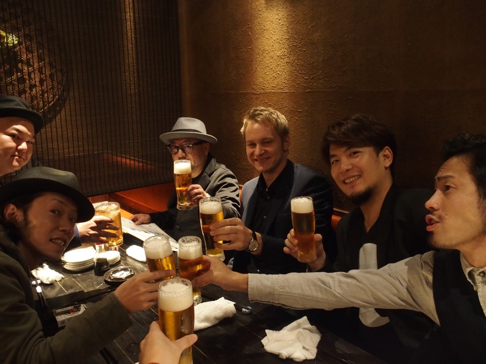 …むしろ、非常に楽しいリハーサルだったとも言えると思います。曲が合わせる事が出来るのは当然であり、ここで決めたいのは、今回の曲の構成や、それぞれのソロの長さだったりするのですが、この日ならではのコラボらしい展開を作ったり、Jukka も色々とアイデアを出してくれたりと、徐々に今回限りのスペシャルなセットが出来上がってくるのを感じ、ライブが決まった時のワクワク感を越えるものが込み上げて来たものでした。そして、交流会…と題し、ライブ前に近くの居酒屋へ…(笑)。Jukka も Hot SAKE を注文し、楽しい時間を過ごせました♪