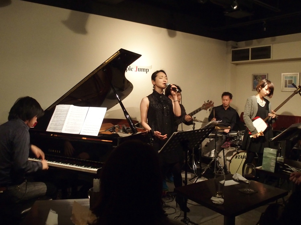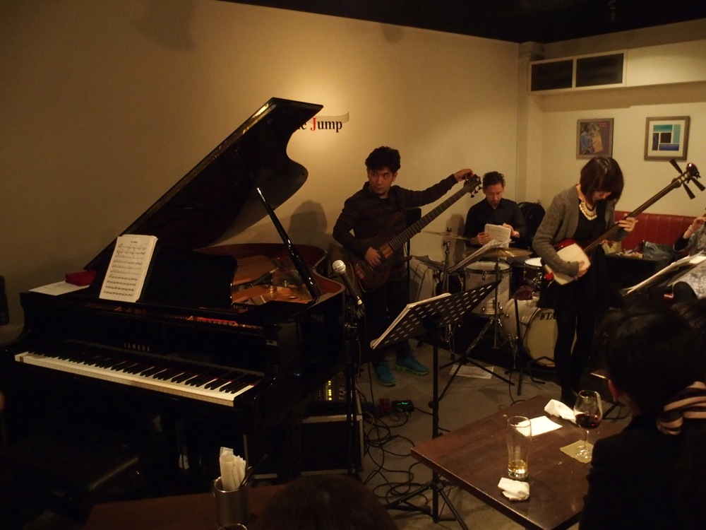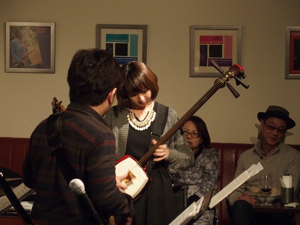 今年最初の曲目は、パット・メセニーの“Have You Heard”から始まりました。これは昨年の奄美でのライブで初めて取り上げた曲なので、今回が初めて聴いたという方も多かったかもしれませんが、原曲と同じように、ボーカルの里アンナさんのボイスもメロディに乗せて、自分達らしさを出していきます。そして、今後の黒船の代表曲にもなりそうな、奄美民謡の“ヨイスラ”。このように、CD『CROSSOVER』に収録されている曲ではなく、次回のCDアルバムに入りそうな曲を中心に、今回はライブを進めていきました。