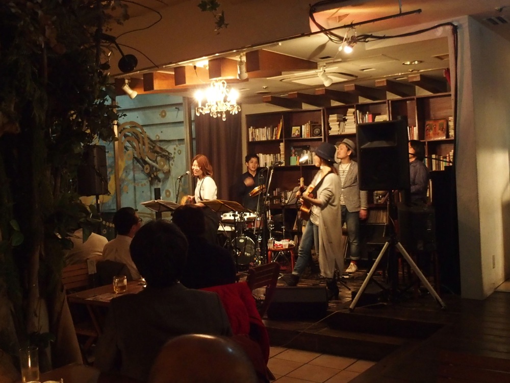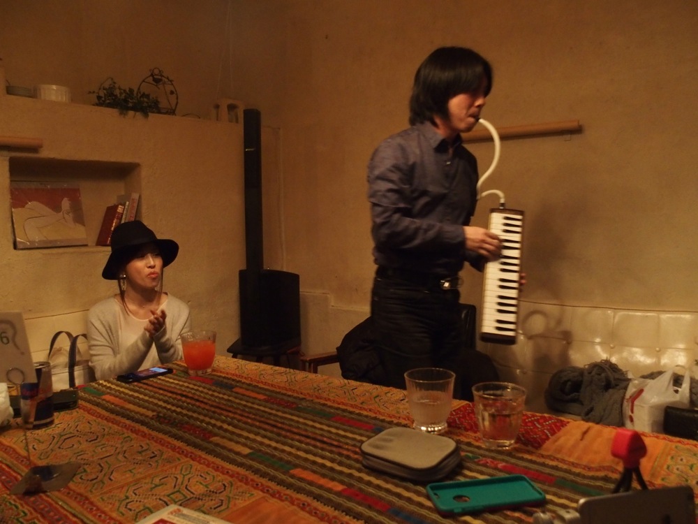 この後も色々な要素を詰め込んだのですが、それはライブ中に垣間見えてくる流れになっていました。まず、最初の1曲にはカバーで、“Stand By Me”を演奏したのですが、それぞれの演奏者メンバーが客席からおもむろに楽器を持って(自分はメロディオン)登場し、徐々に歌や楽器が加わって、ステージに上がっていくという手法を取ってみました。アンプラグドな感じがお店の雰囲気とも合っていて、幕開けに相応しい演出に繋がったように思いました。